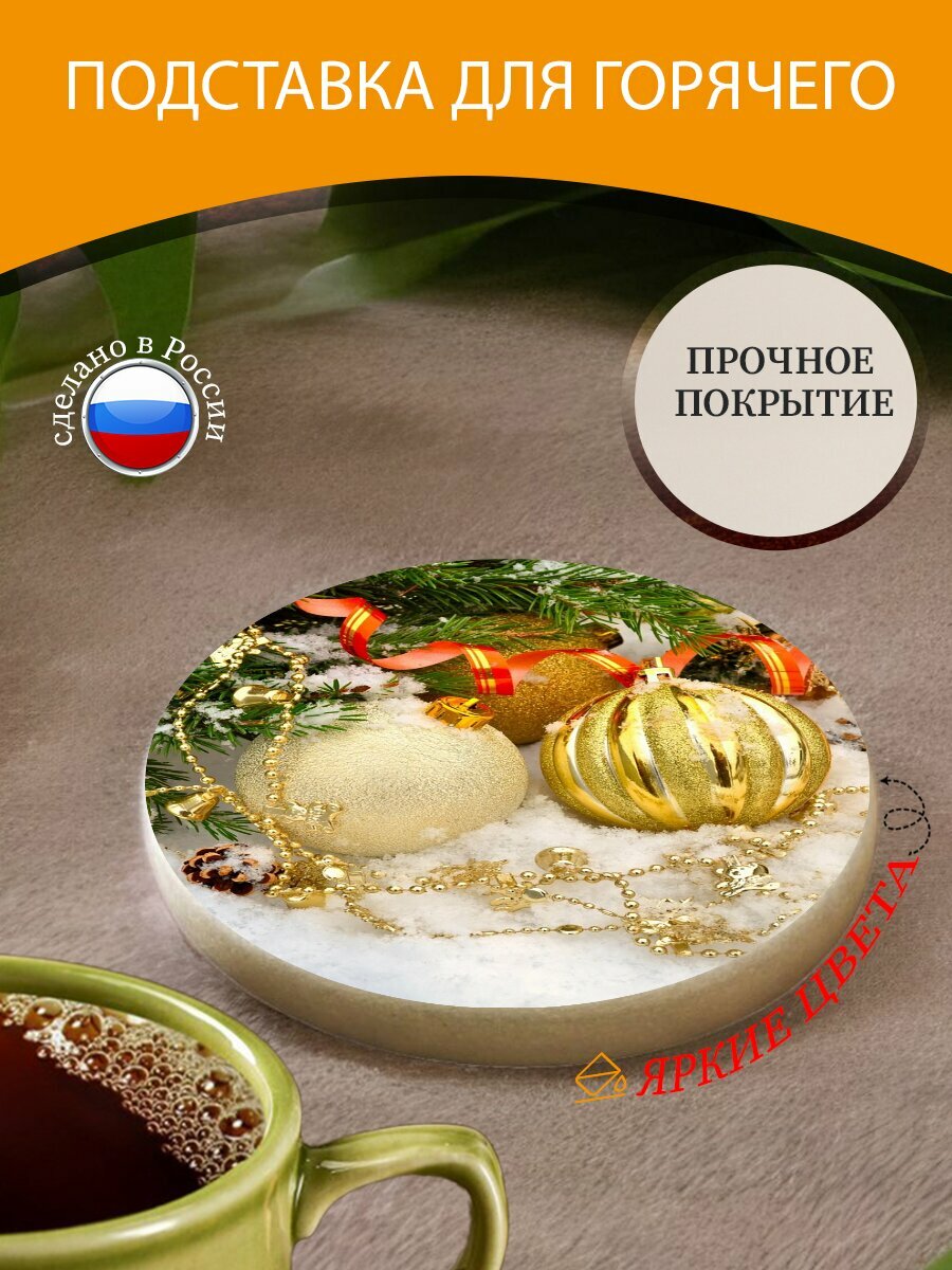 Подставка под горячее "Новый год, рождество, праздничный день" 10 см. из блого мрамора интересное: