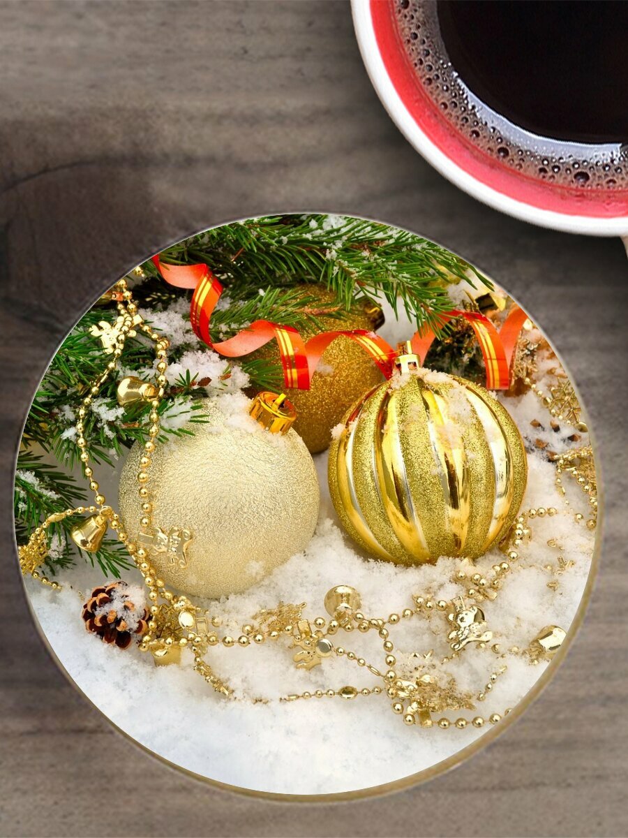 Купить Подставка под горячее "Новый год, рождество, праздничный день" 10 см. из блого мрамора