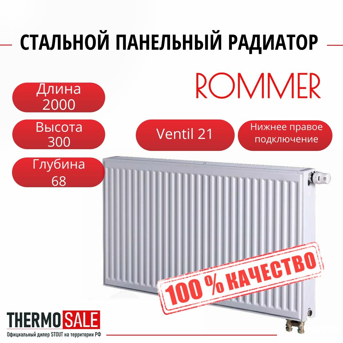 Rommer RRS-2020-213200 ROMMER 21/300/2000 радиатор стальной панельный нижнее правое подключение Ventil