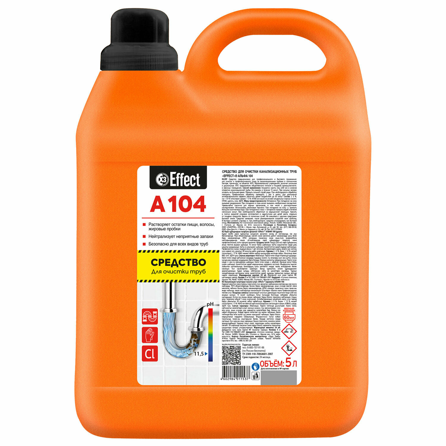Профессиональное чистящее средство Effect A104 (ALFA 104) для канализационных труб и сливов, 5 л