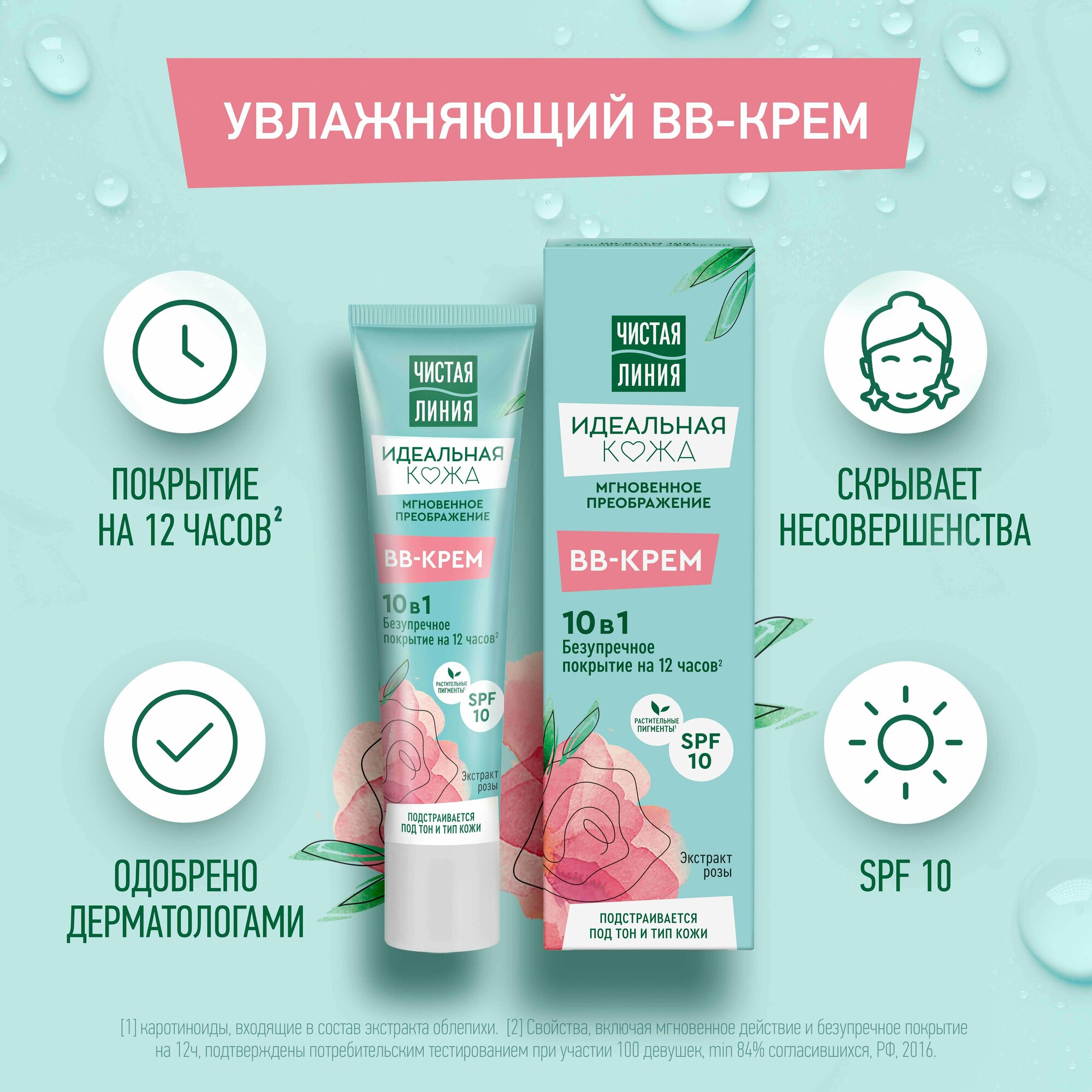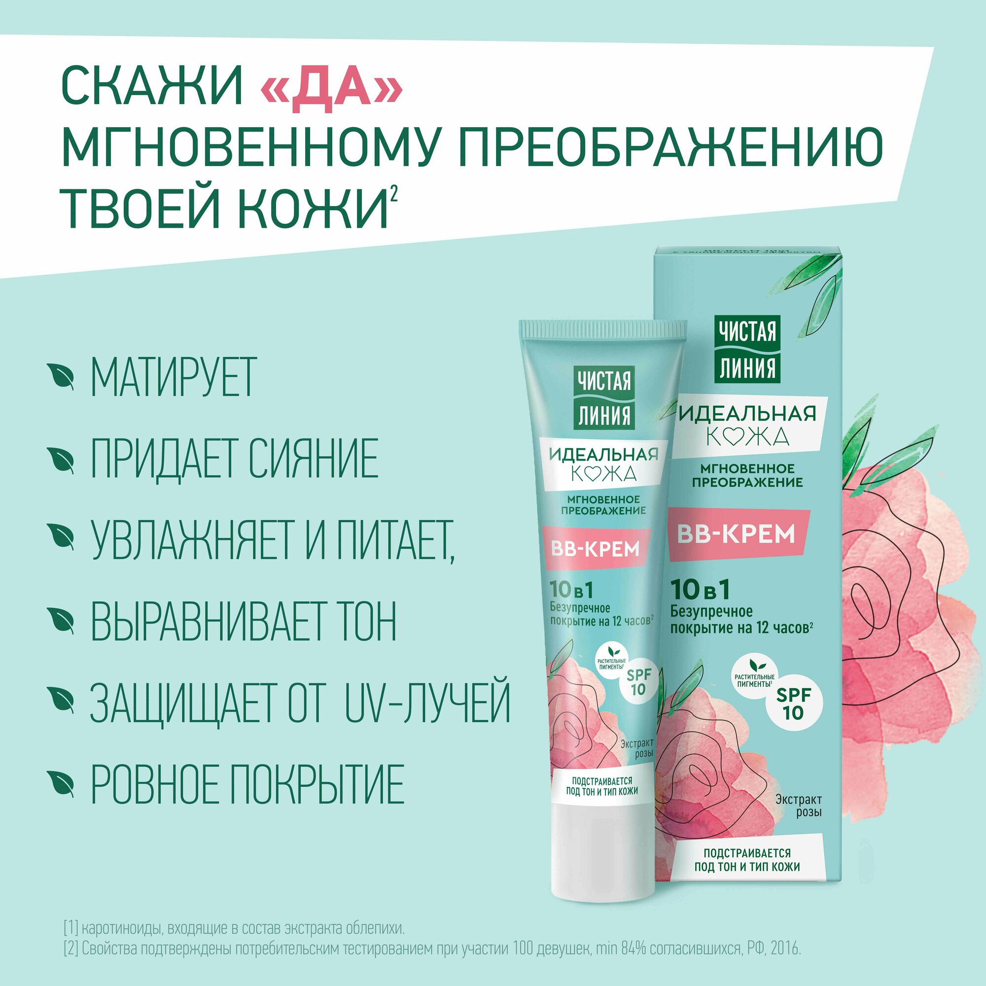 Крем-BB для лица чистая линия Идеальная кожа 10в1, 40 мл