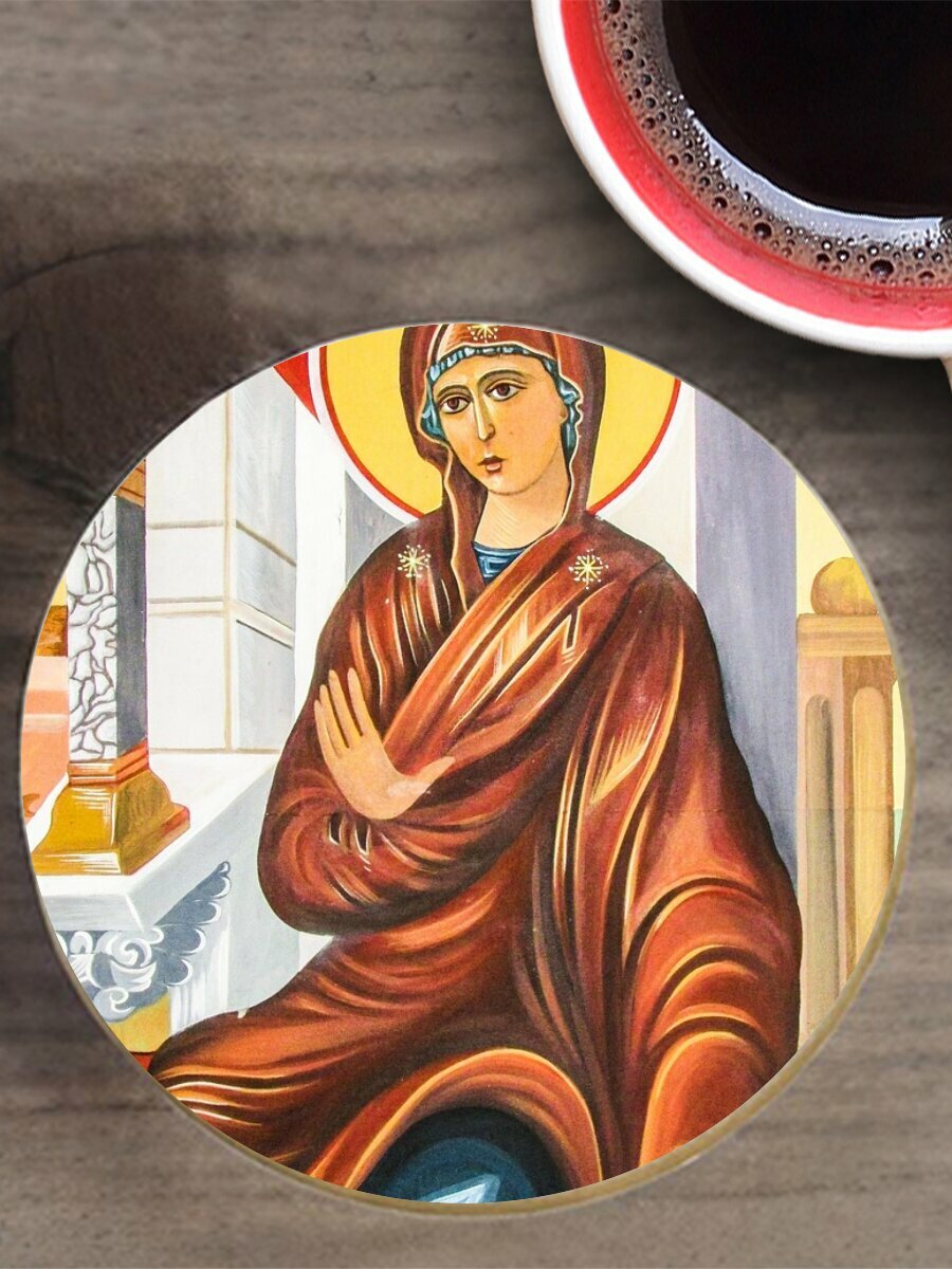 Купить Подставка под горячее "Панагия, дева мария, иконография" 10 см. из блого мрамора