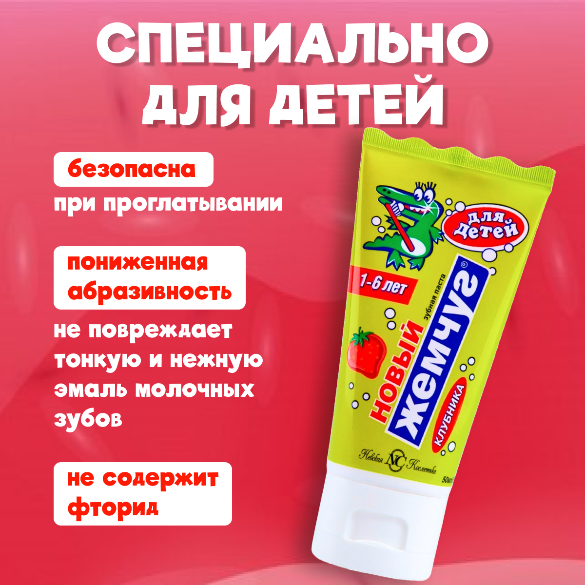 Новый Жемчуг Зубная паста для детей Клубника 50 мл 3 шт / Зубная паста для детей от 1 года