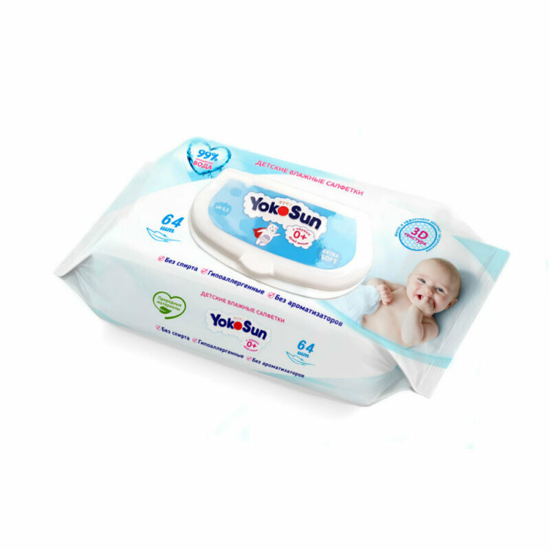Детские влажные салфетки YokoSun гигиенические, 64 шт.