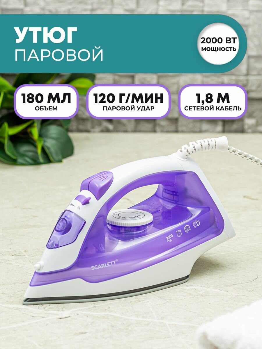Утюг SCARLETT SC-SI30P10, антипригарная, 2000Вт, фиолетовый, 1986693