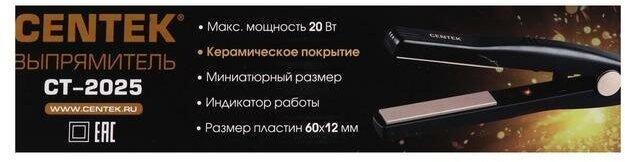 Щипцы-выпрямление CENTEK CT-2025 20 Вт, черный