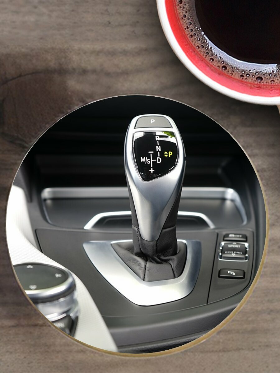 Купить Подставка под горячее "Салон автомобиля, селектор передач, коробка передач" 10 см. из блого мрамора