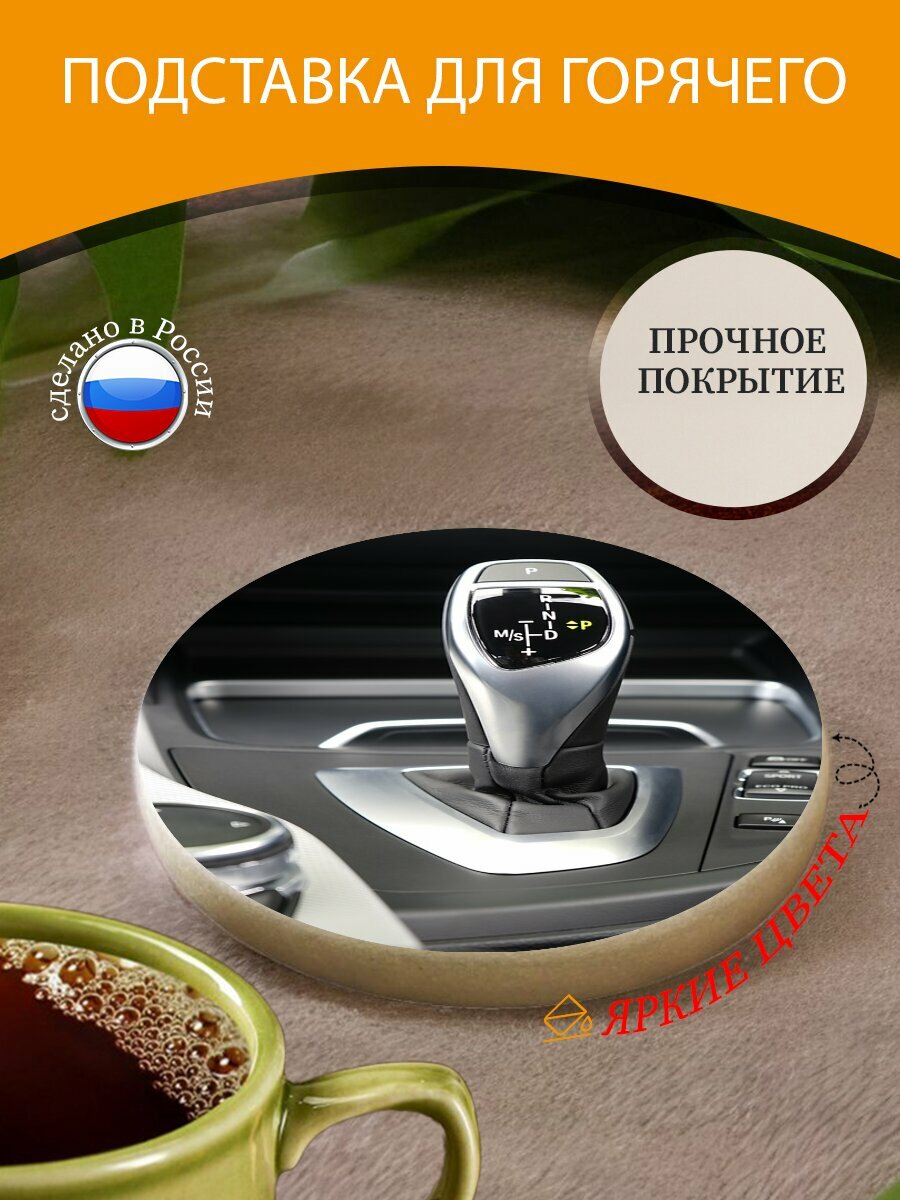 Подставка под горячее "Салон автомобиля, селектор передач, коробка передач" 10 см. из блого мрамора интересное: