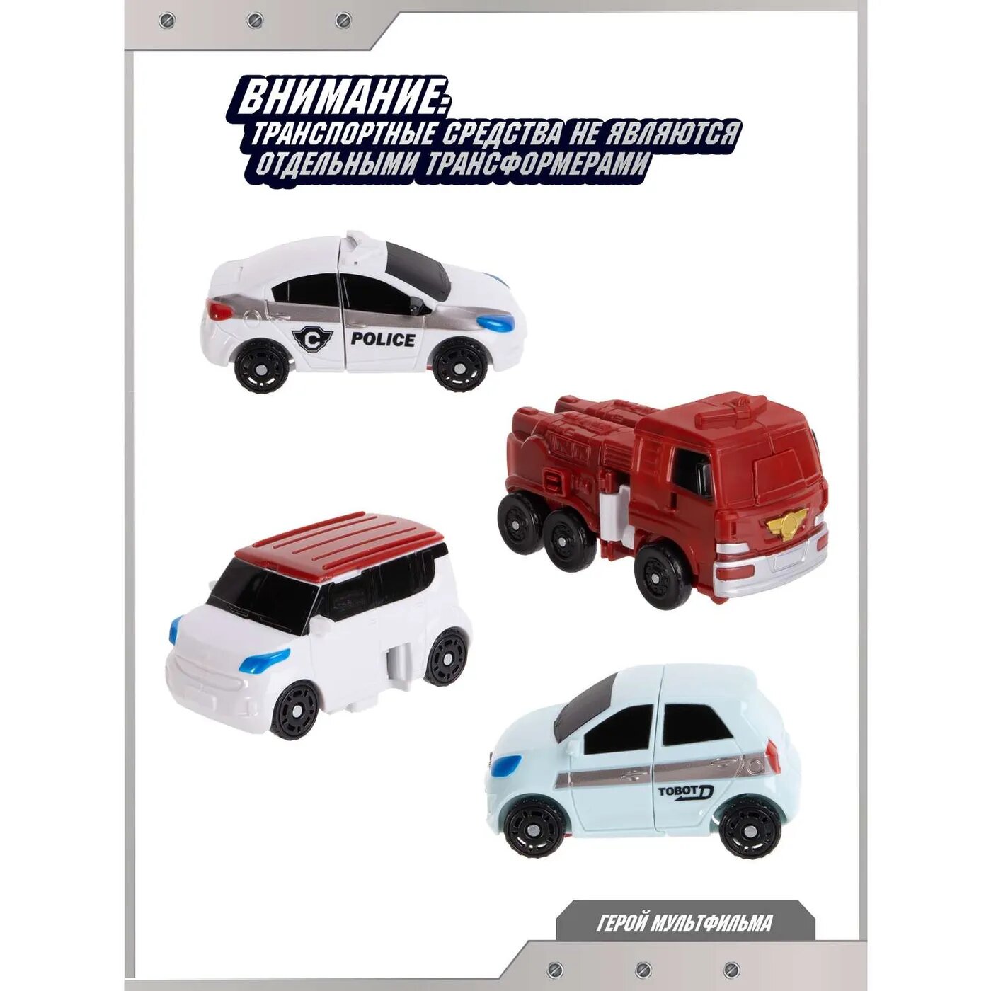 | Минусы: | Качество сборки и пластмассы. Сразу отломалась красная крыша у Tobot W, не держится рука под днищем машинки Tobot D. |