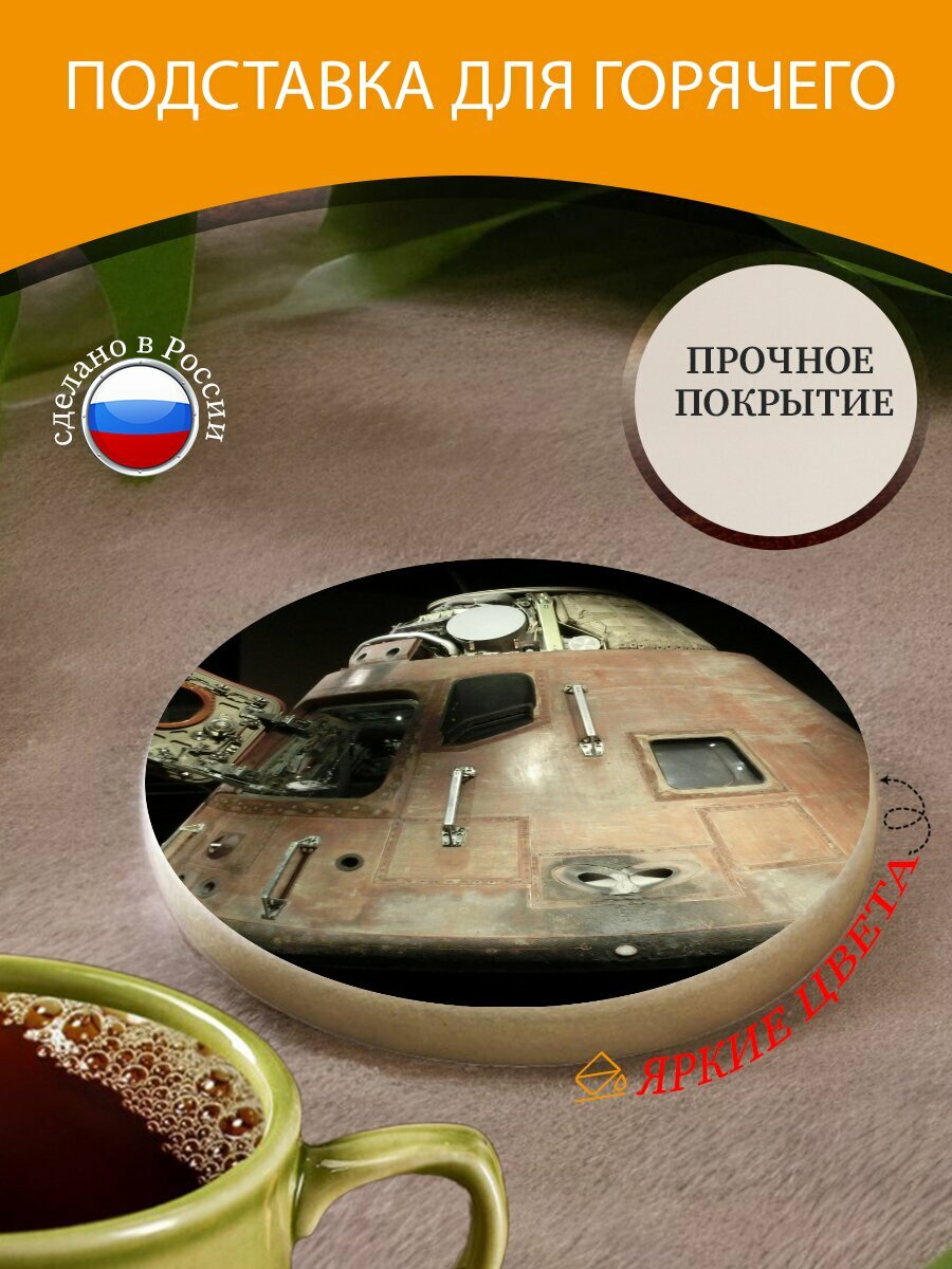 Подставка под горячее "Космическую капсулу, программа аполлон, спускаемый аппарат" 10 см. из блого мрамора интересное: