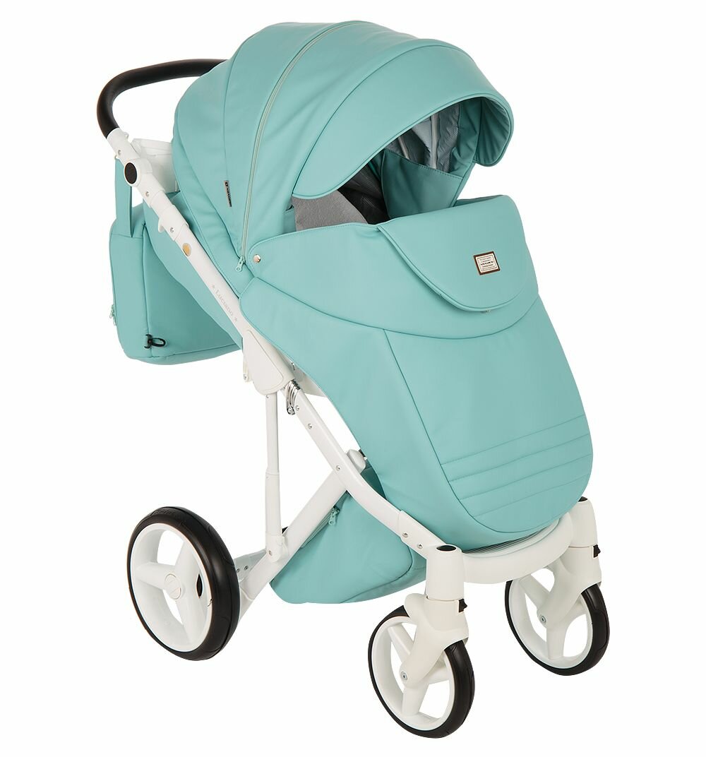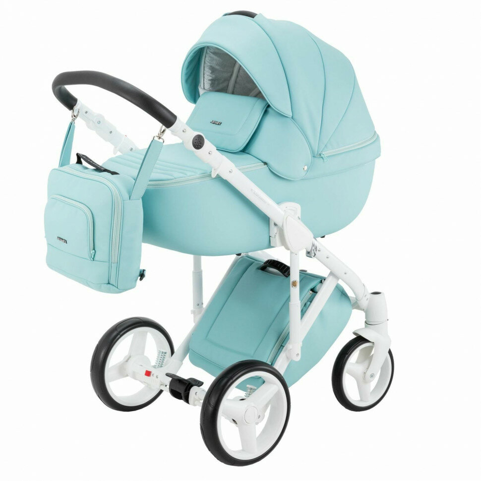 Детская универсальная коляска Adamex Luciano Deluxe Q-113 2в1 (Светло-бирюзовый экокожа)