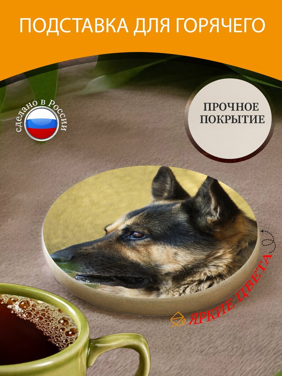 Подставка под горячее "Собака, животные, овчарка" 10 см. из блого мрамора интересное: