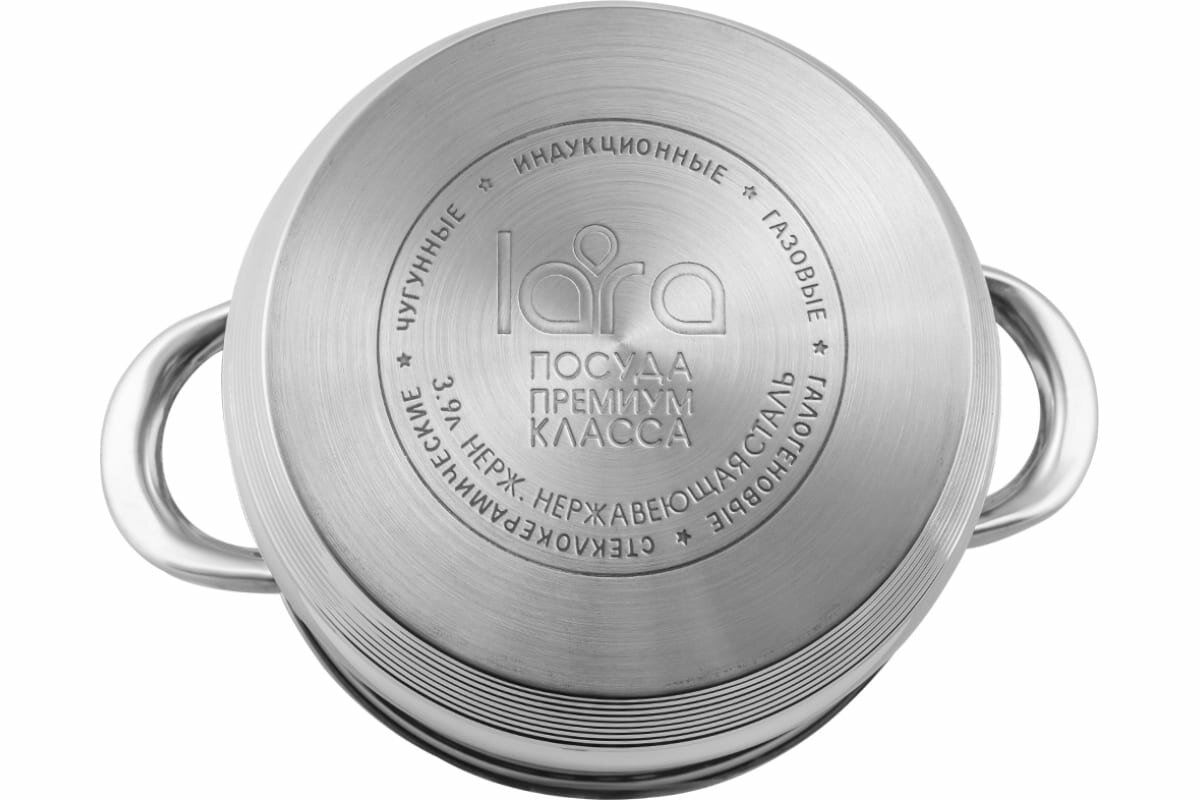 Кастрюля из нержавеющей стали 3.9л LARA LR02-582/ серия SONATA для всех видов плит, для индукционных, крышка