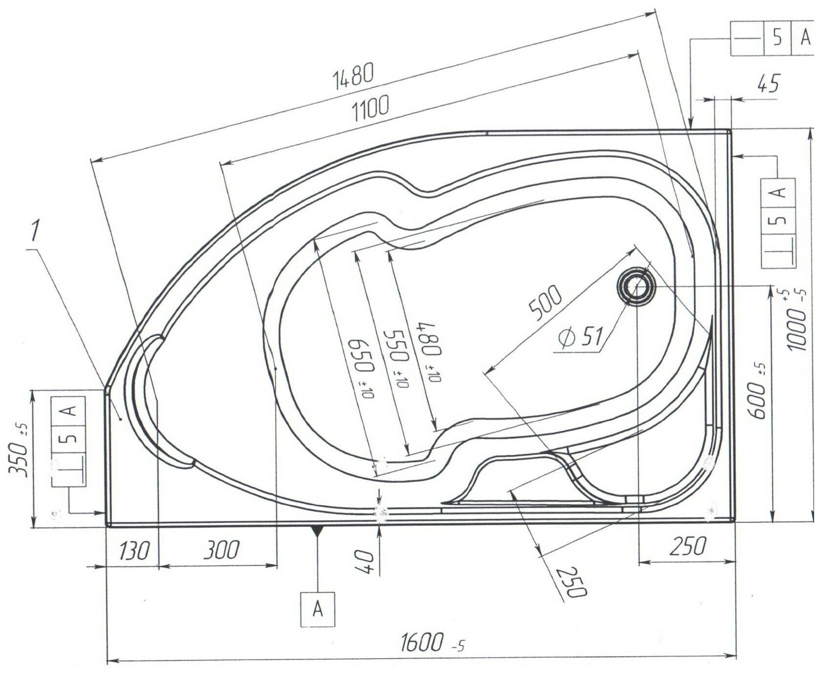 Акриловая ванна 1Marka DIANA 160x100 R