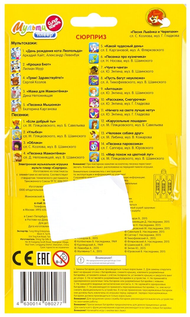 Ниже Вы можете прочитать отзывы на Мультиплеер Сюрприз (5 сказок, 15 песенок), ознакомится с подробными характеристиками, посмотреть интересные обзоры и фотографии на Мультиплеер Сюрприз (5 сказок, 15 песенок).