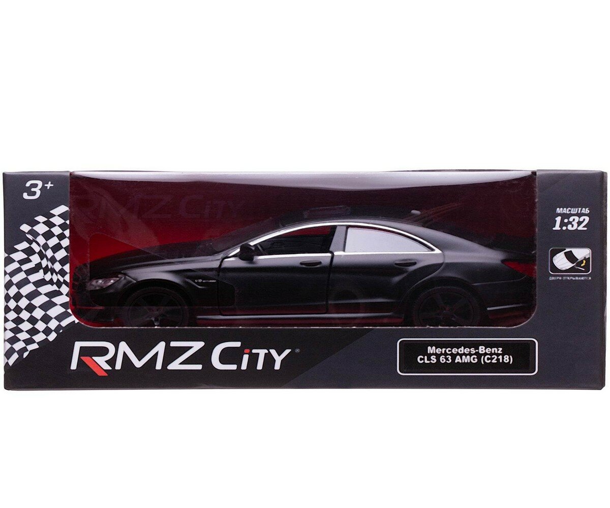 Машинка металлическая Uni-Fortune RMZ City серия 1:32 Mercedes Benz CLS 63 AMG, инерционная, черный матовый цвет, двери открываются 554995M