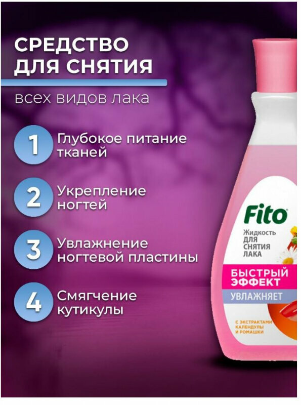 Жидкость для снятия лака fito косметик Быстрый Эффект с Экстрактами Календулы и Ромашки 100 мл