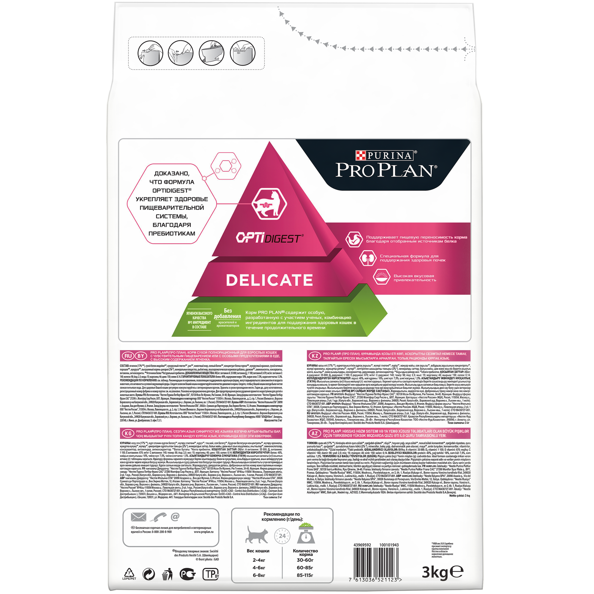Purina PRO PLAN Delicate Сухой корм для кошек с чувствительным пищеварением, ягнёнок, 3 кг