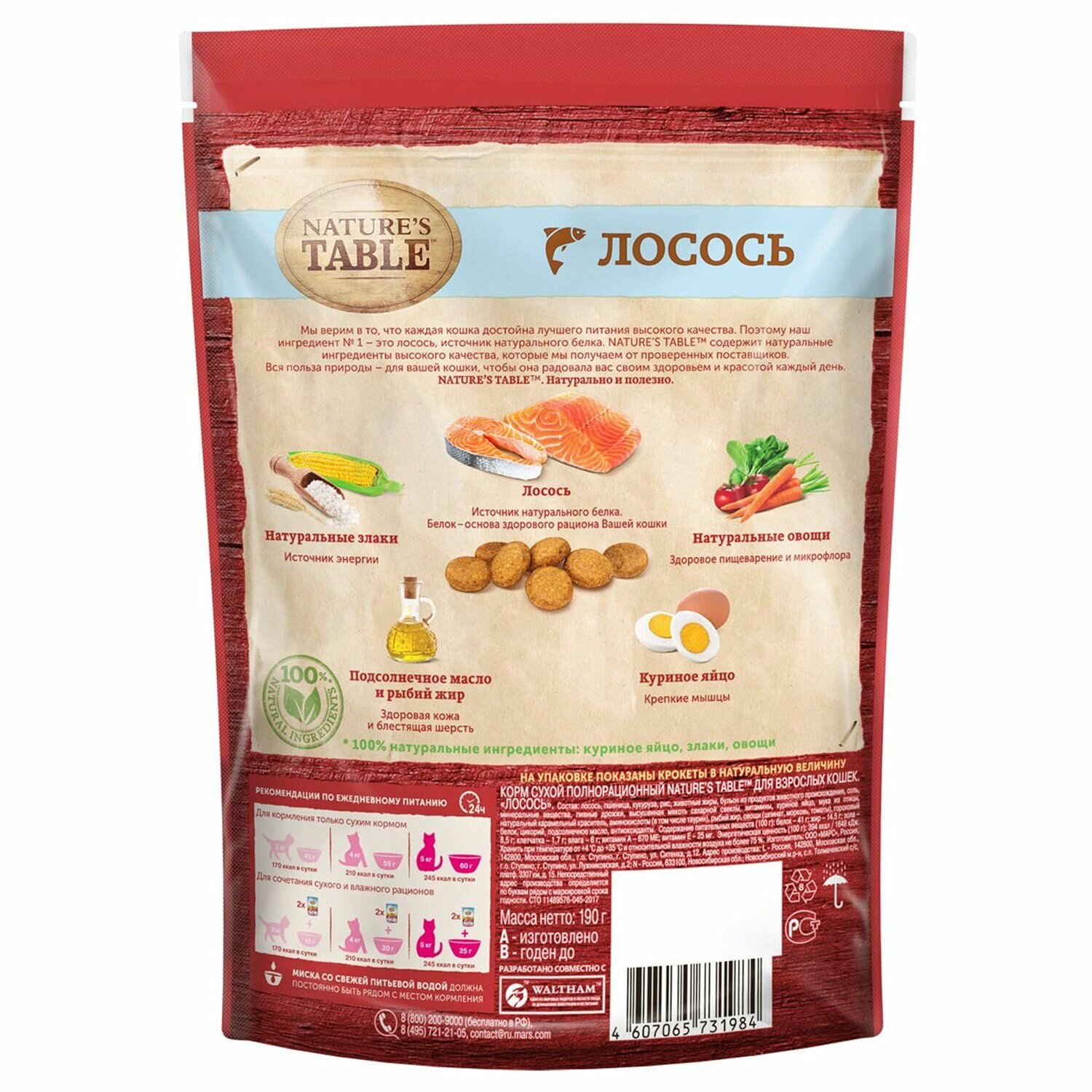 Купить Nature’s Table сухой корм для кошек с лососем - 190 г