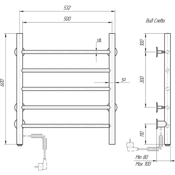 Полотенцесушитель электрический Domoterm Аврора DMT 109-5 50x60, L с полотенцедержателем