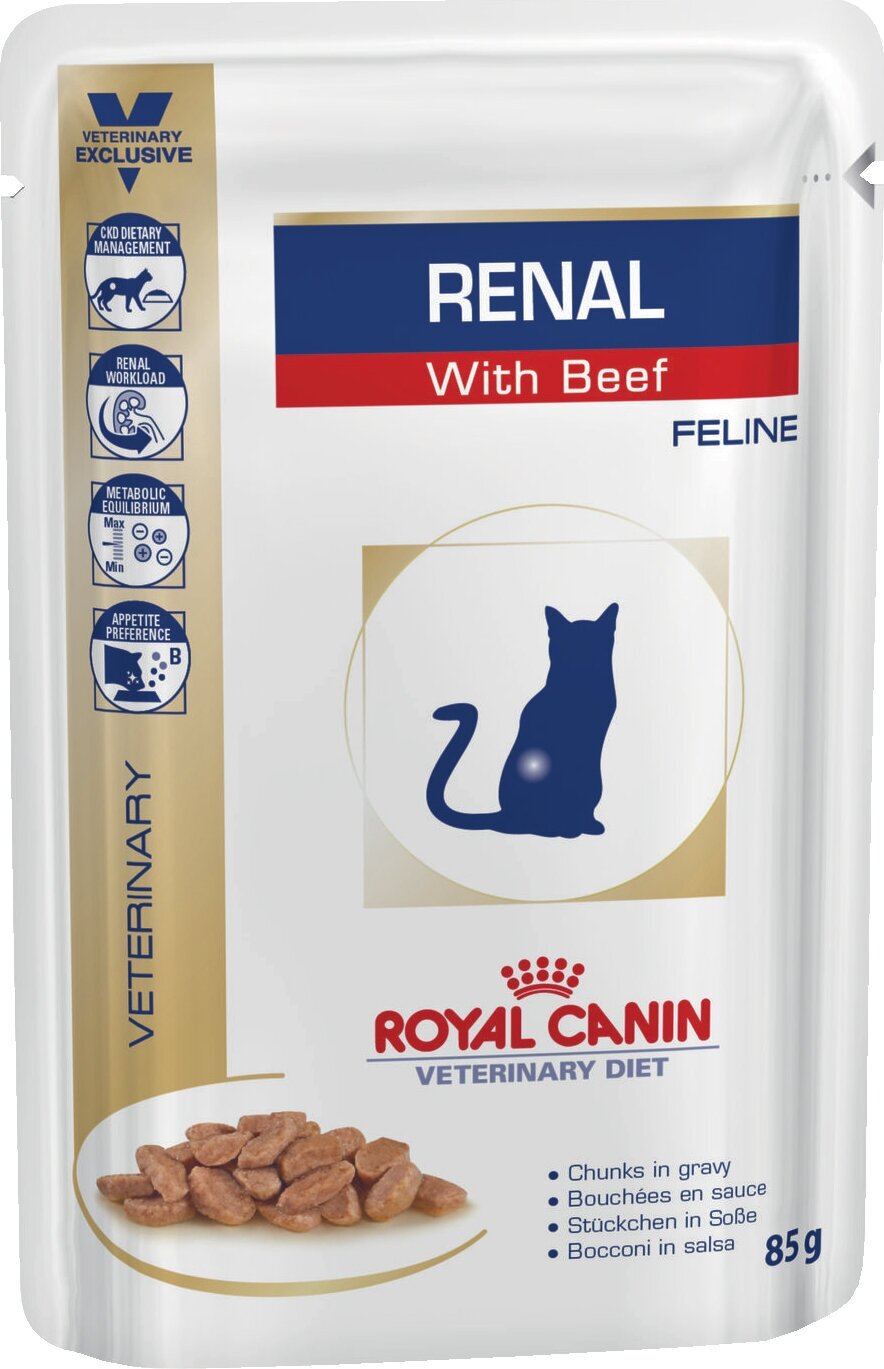 Влажный корм для кошек Royal Canin Renal, при проблемах с почками, с говядиной 85 г (кусочки в соусе)