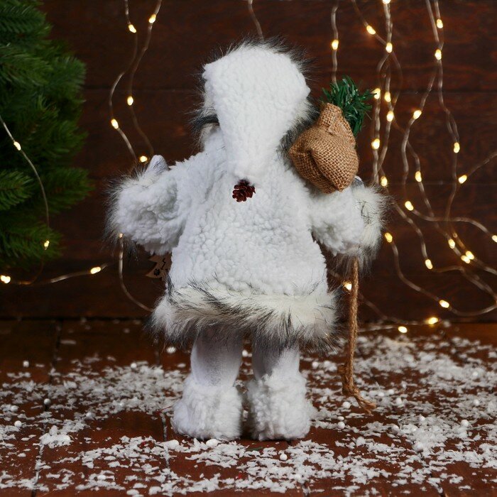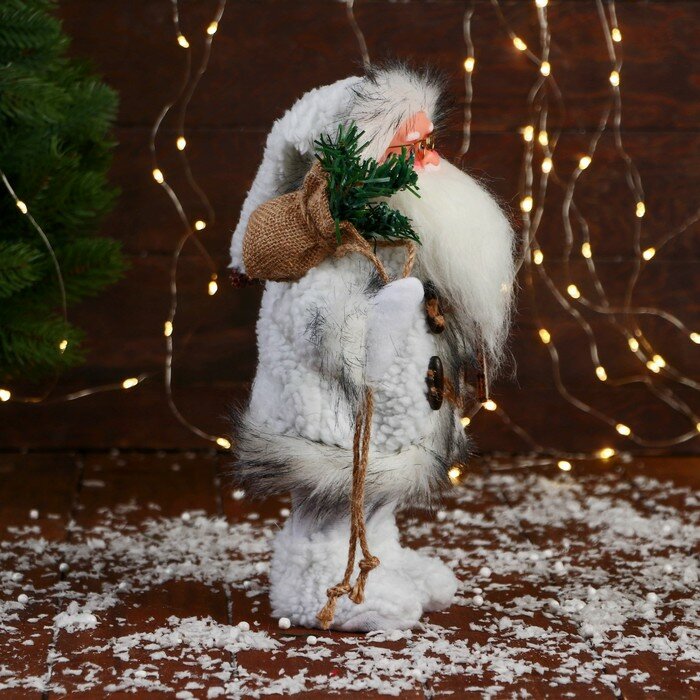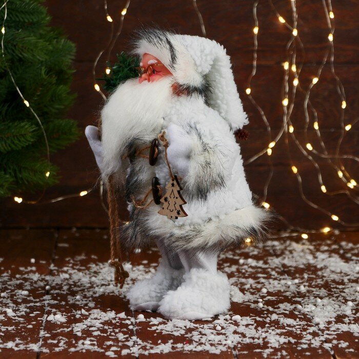 Дед Мороз "С кудрявой бородой, в меховом костюме" 28 см, белый интересное: