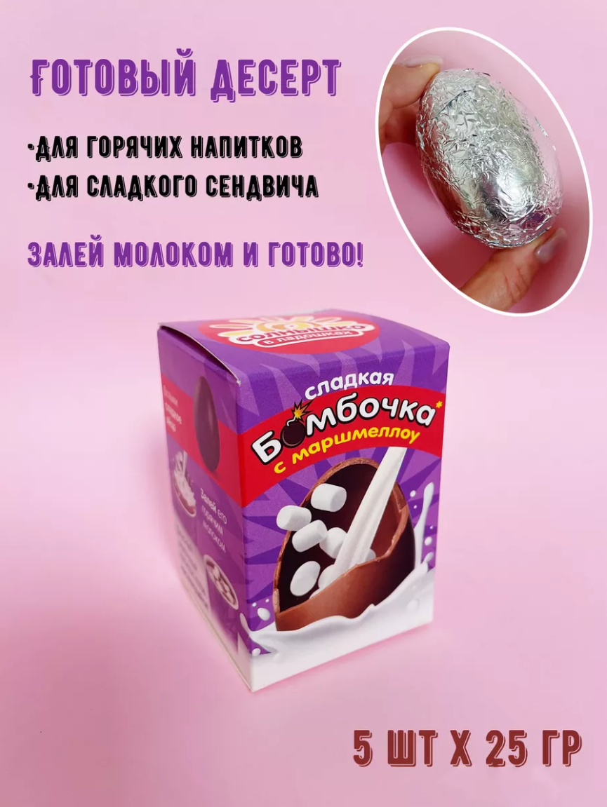 Шоколадные бомбочки с маршмеллоу для какао 5 штук по 25грамм интересное:
