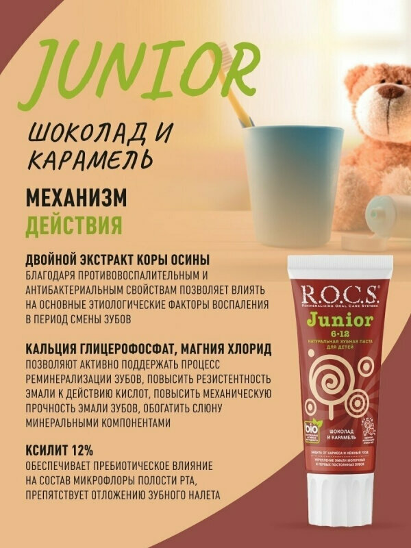 R.O.C.S. Зубная паста Junior Шоколад и Карамель с 6до12 лет