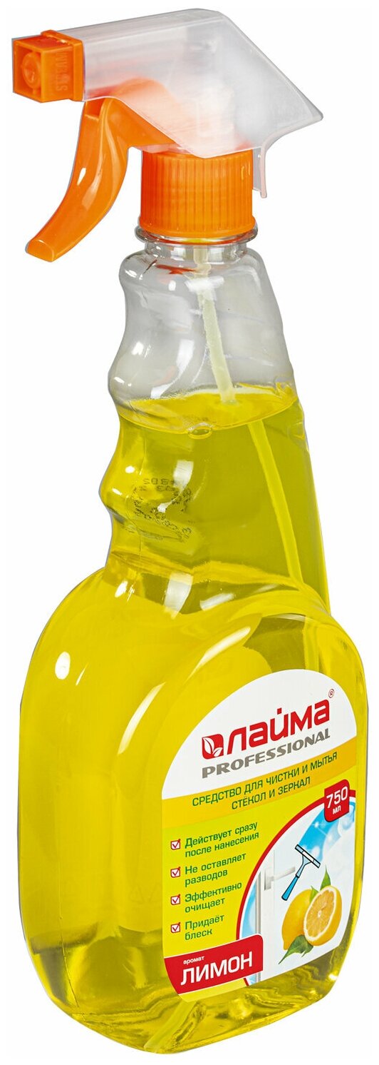 Средство для мытья стекол и зеркал Лайма 750 мл, PROFESSIONAL "Лимон", распылитель (604653)