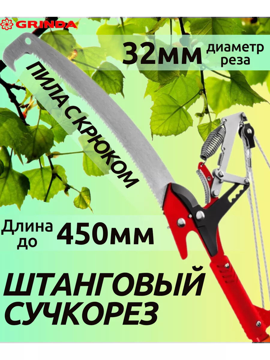 HX-350 штанговый сучкорез с храповым механизмом и пилой с режущим крюком, GRINDA