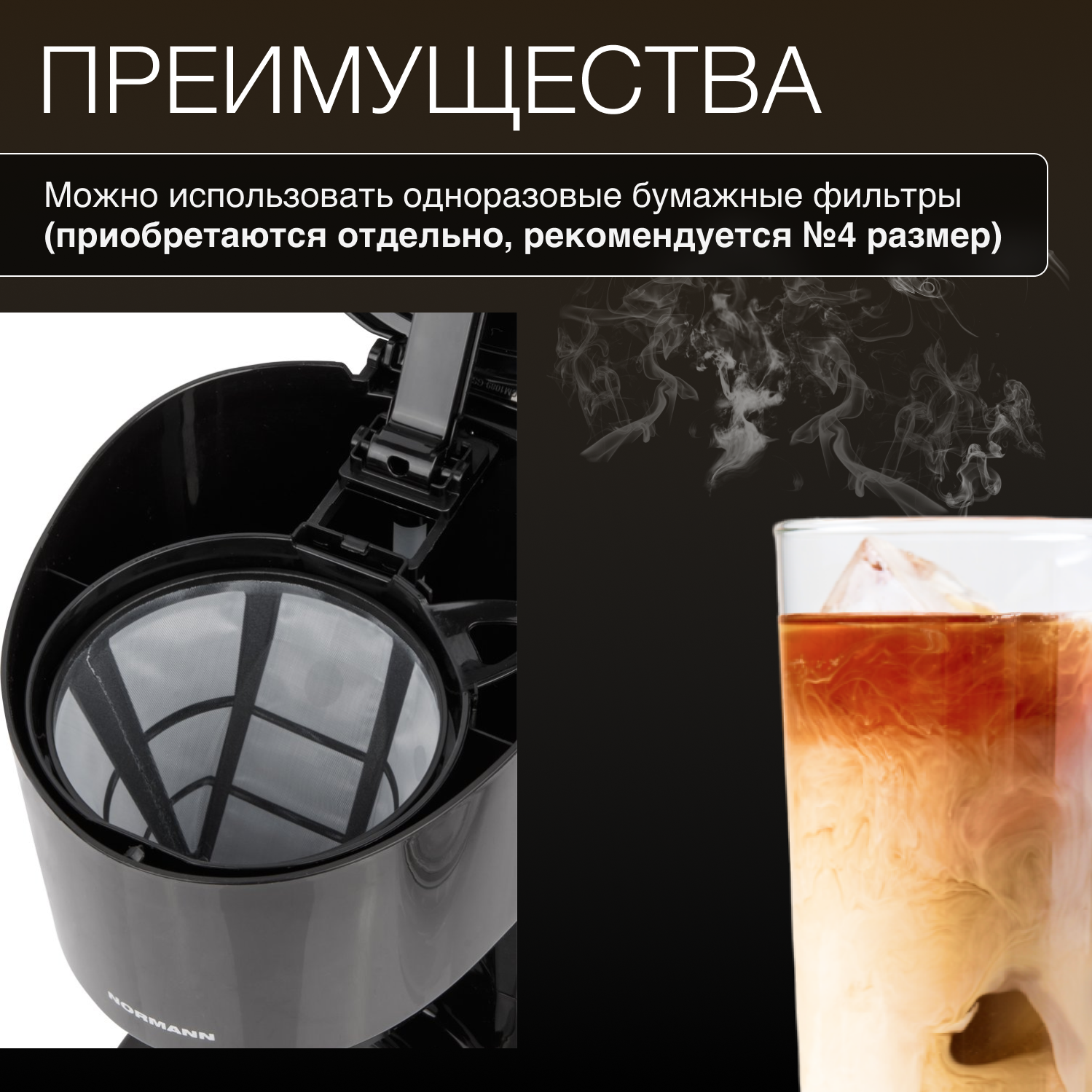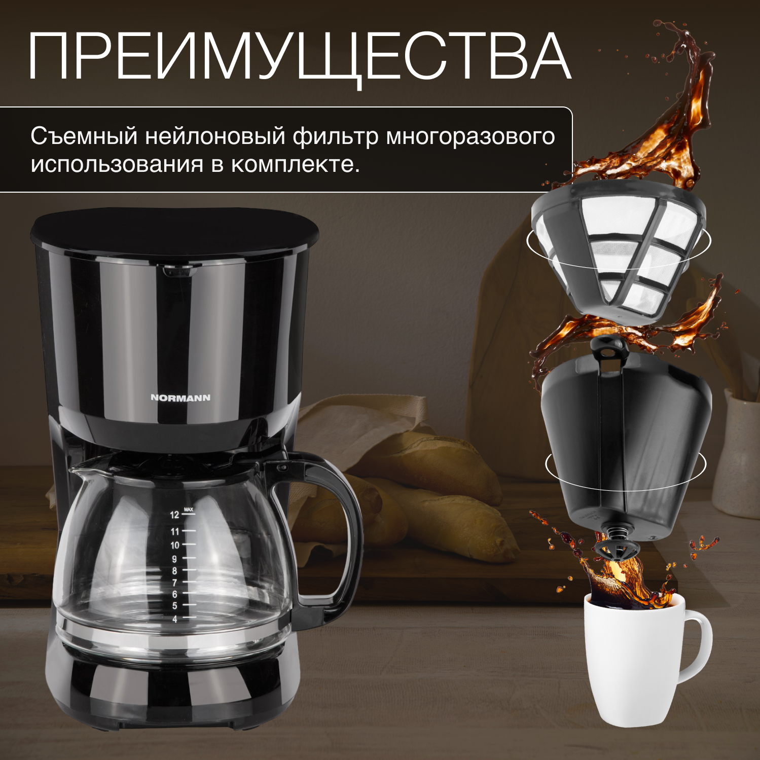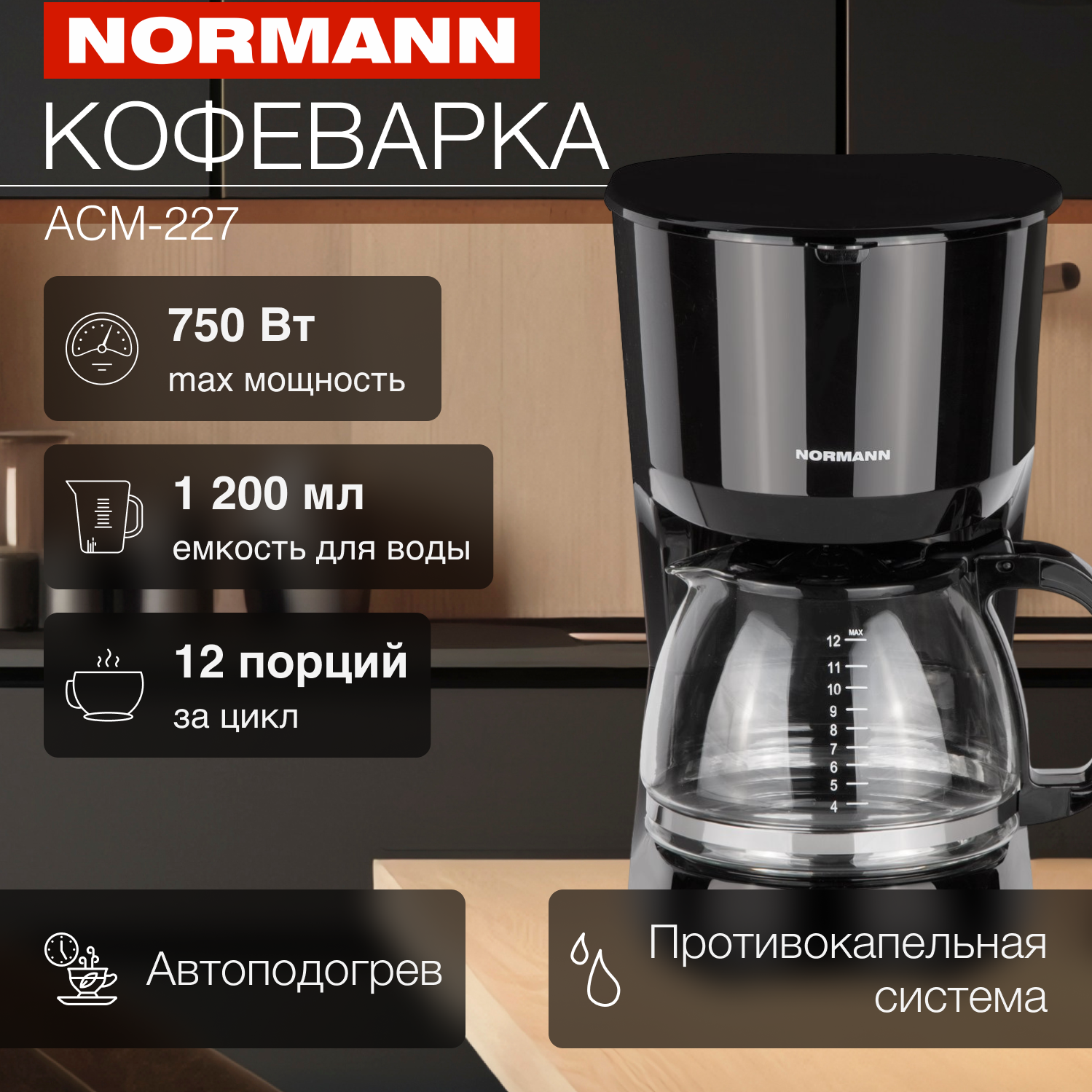 Кофеварка ACM-227 NORMANN (капельная, 750 Вт, 1,25 л) интересное: