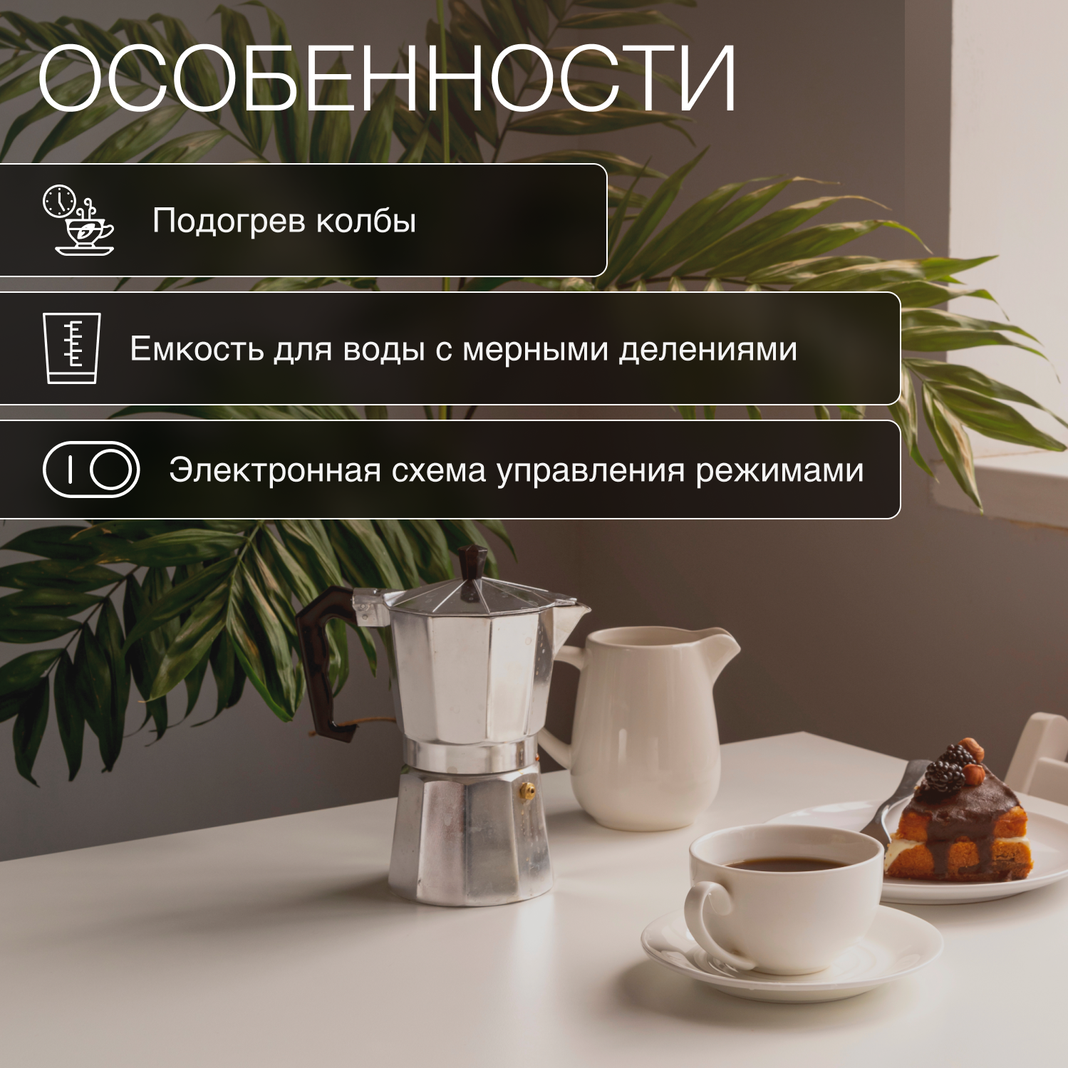 Варится кофе "автоматически": залил воду, закинул кофе, нажал кнопку - всё, что нужно для работающего по удалёнке ) |