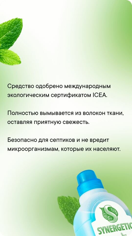 Кондиционер для белья SYNERGETIC Реликтовый лес 1,5 л 50 стирок, гипоаллергенный, биоразлагаемый