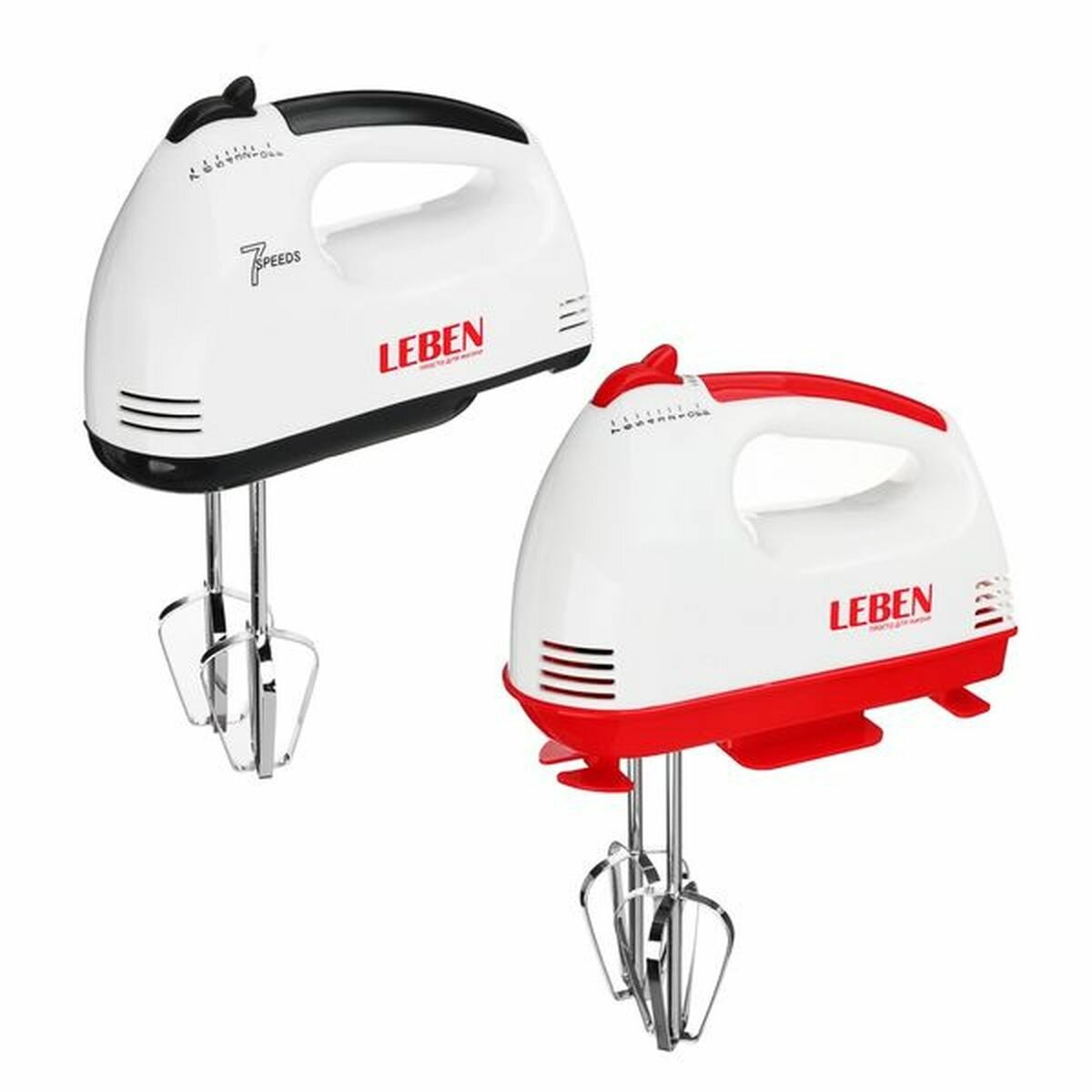Купить LEBEN Миксер ручной, 100Вт, 7 скоростей, 2 пары насадок из нерж.стали, корпус пластик