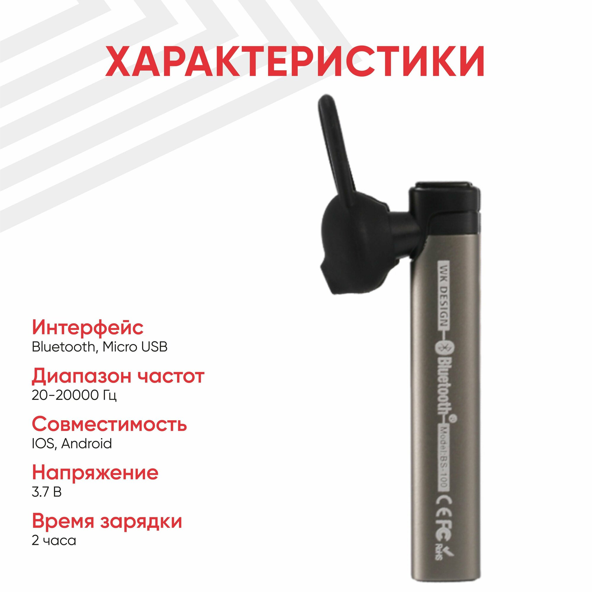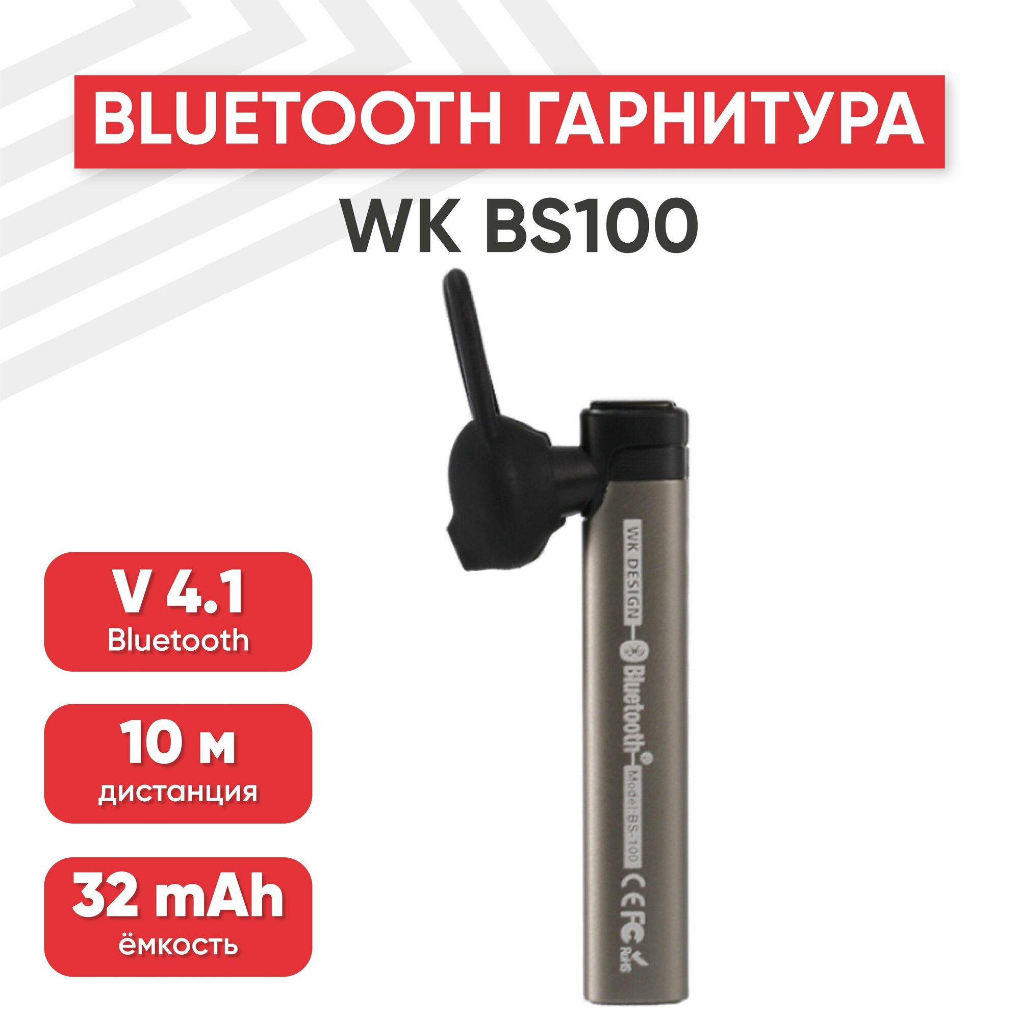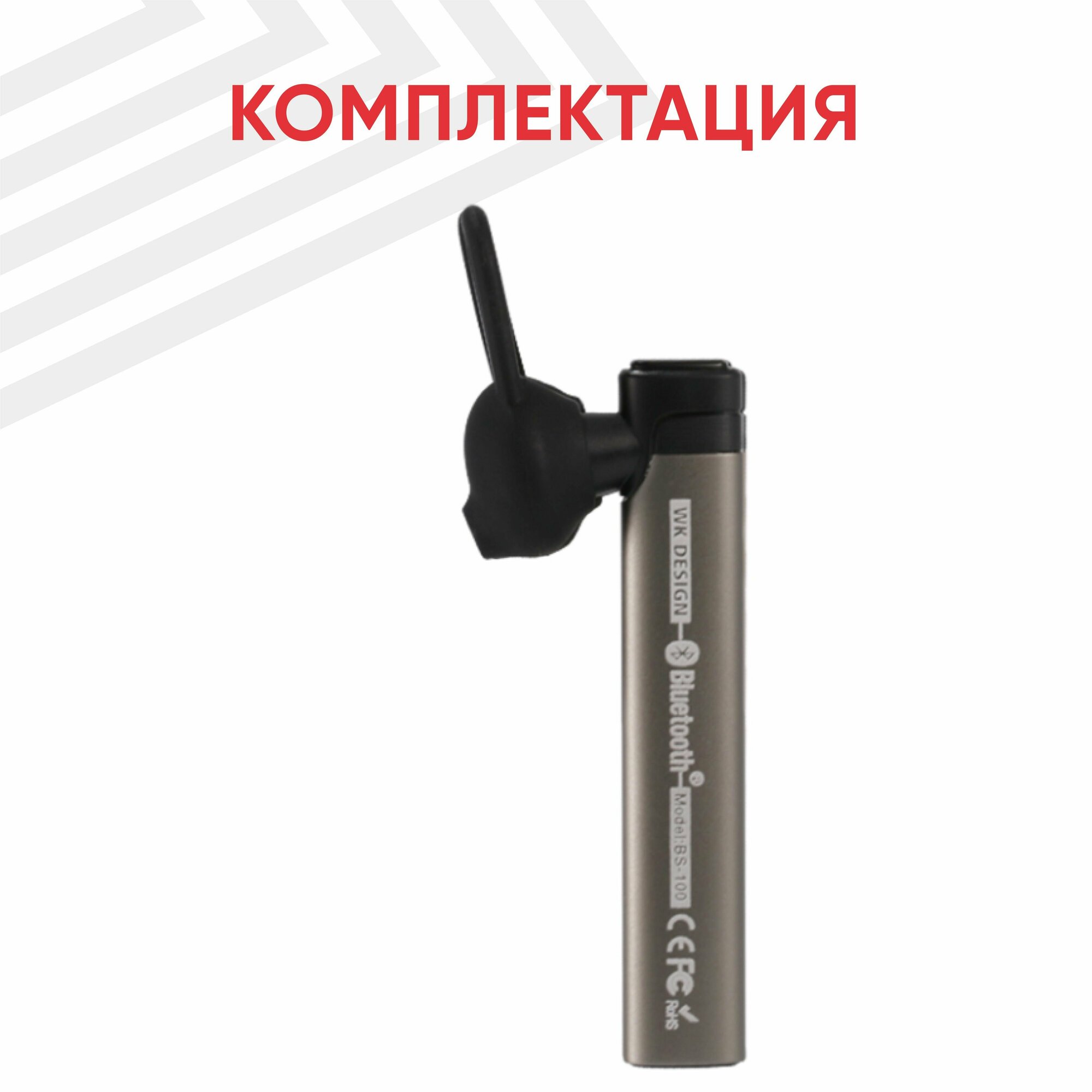 Bluetooth-гарнитура WK BS100, моно, внутриканальная, серебристая интересное: