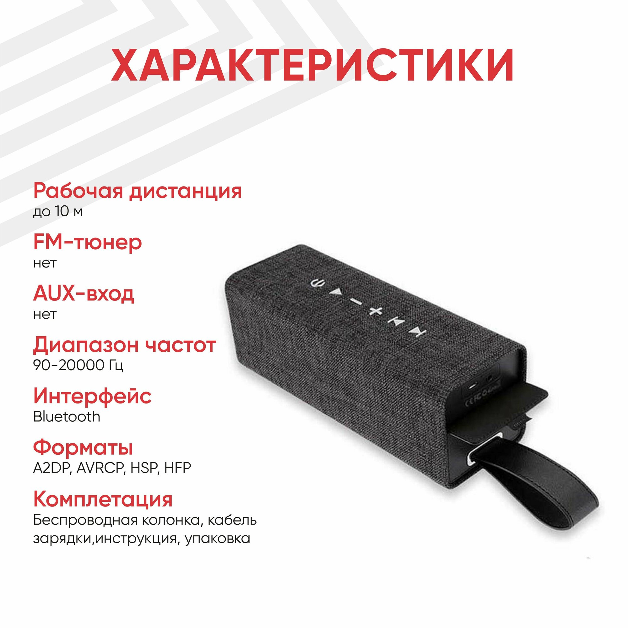 Портативная колонка TFN Quadro, 3Вт, Bluetooth 5.0, microSD, microUSB, IPX6, 1500мАч, черная
