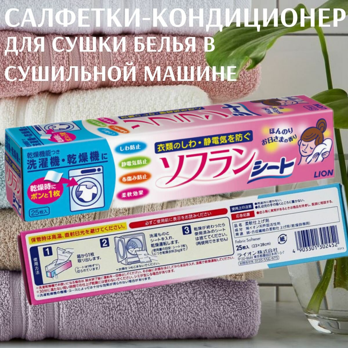 LION Салфетки-кондиционер Lion Sofran для сушки белья в сушильной машине, 25 шт