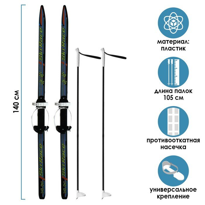 Лыжи подростковые Олимпик Ski Race, с палками, 105 см, стеклопластик, универсальное крепление, длина 140 см (332485-00)