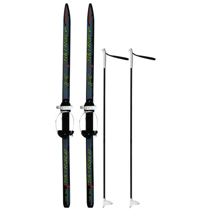 Лыжи подростковые Ski Race с палками стеклопластик, унив.крепление, (140/105)