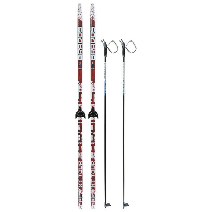 Комплект лыжный: пластиковые лыжи 205 см с насечкой, стеклопластиковые палки 165 см, крепления NN75 мм, цвета микс интересное: