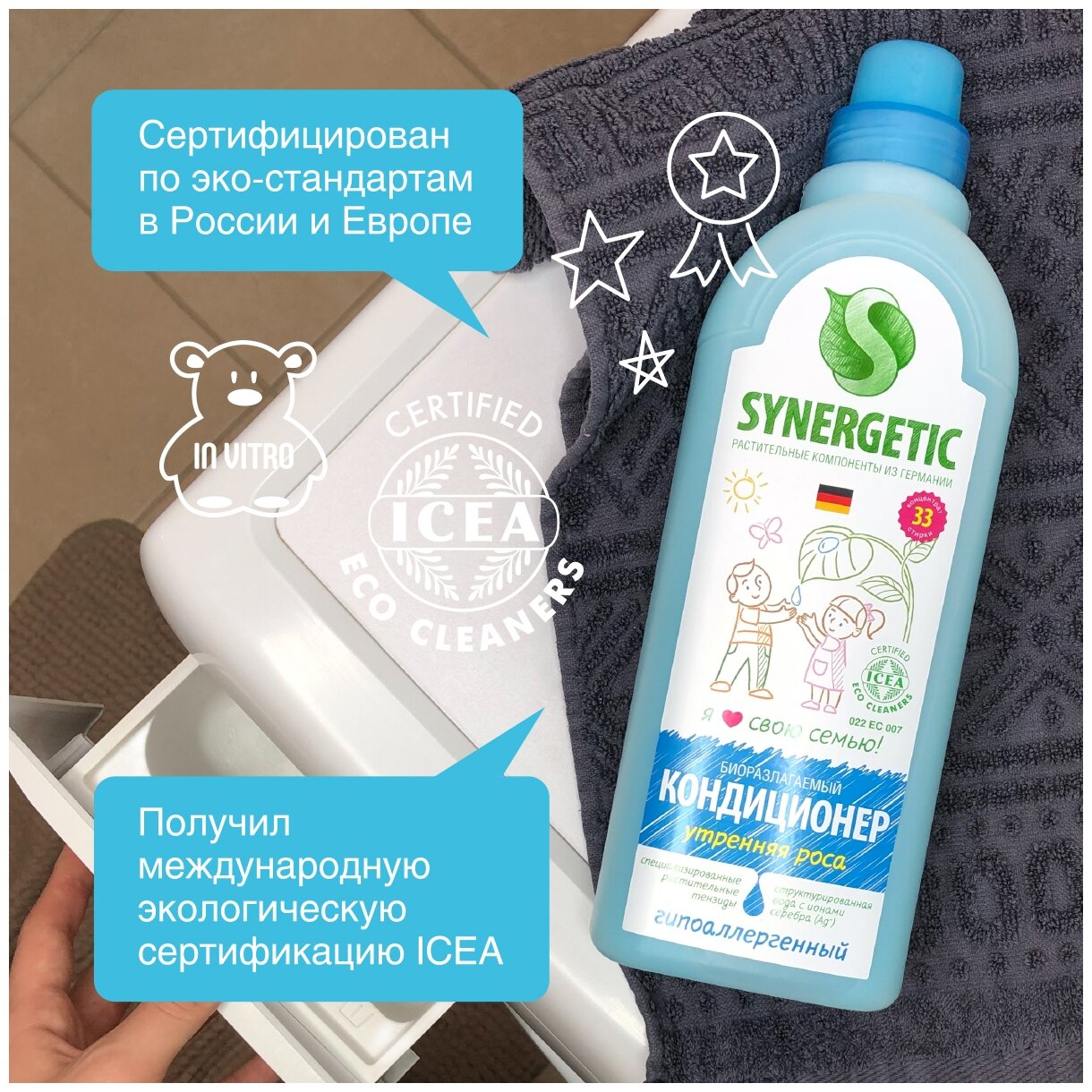 Synergetic Кондиционер-ополаскиватель для белья Synergetic "Утренняя роса", биоразлагаемый,гипоаллергенный,1 л