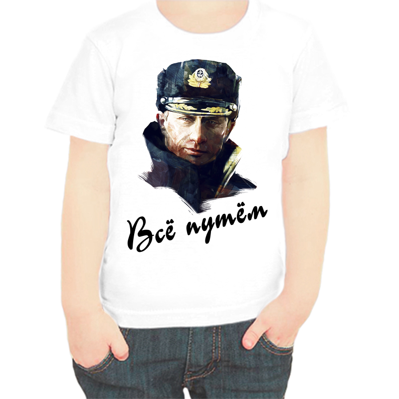 Футболка белая мальчику с Путиным все путем 2 р-р 28