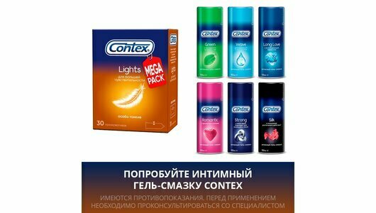 Презервативы Contex Lights, особо тонкие с силиконовой смазкой, 30 шт