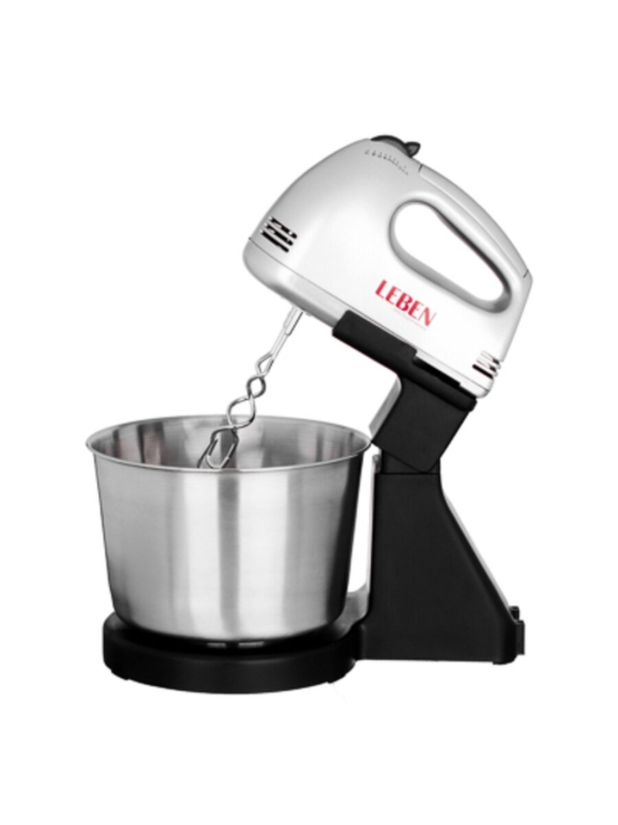 LEBEN Миксер кухонный 100Вт, 7 скоростей, 4 насадки, металлическая чаша 2л