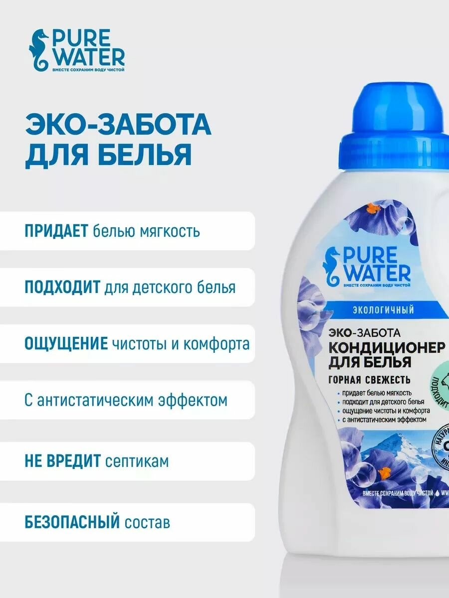 PURE WATER Кондиционер для белья «Горная свежесть», 480 мл, PURE WATER