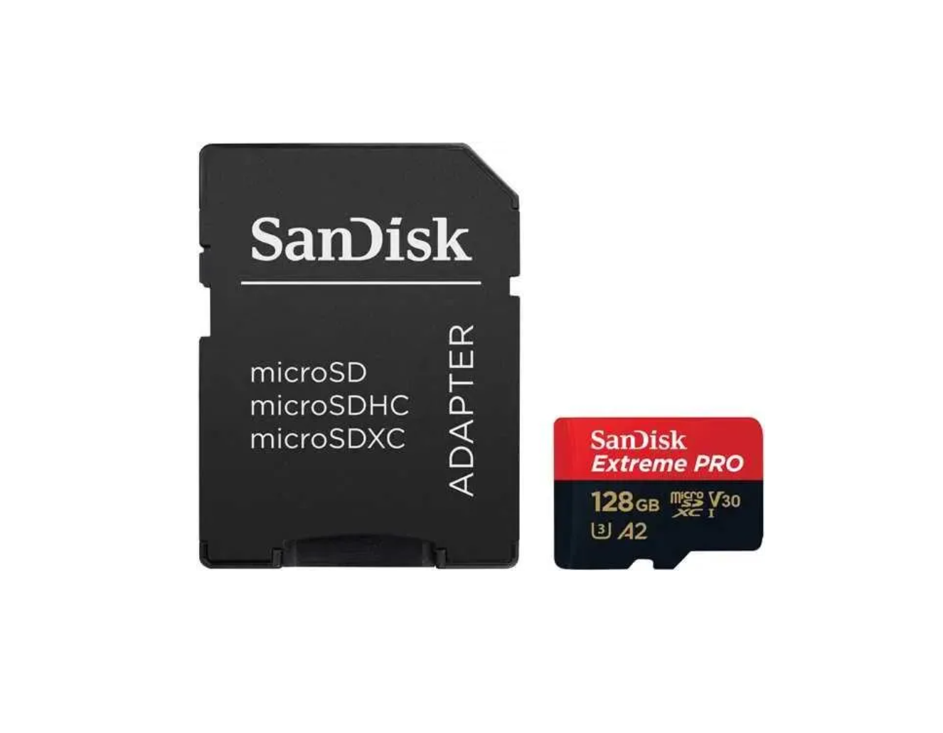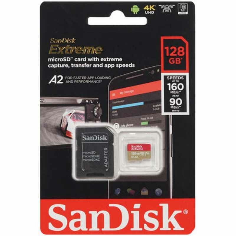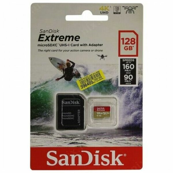 Карта памяти с адаптером SanDisk Extreme microSDXC 128 ГБ Class10 UHS Class 3 V30 A2 190/90 Mb/s (Go Pro, dji, дроны)