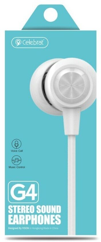 Наушники внутриканальные с микрофоном Celebrat G4 , белый 3.5mm Audio Pin, 1,2m