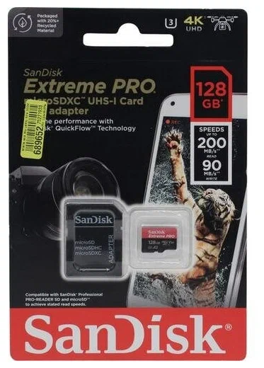 Карта памяти SanDisk Extreme Pro microSDXC 128GB UHS-I U3 V30, A2, R/W 200/90 МБ/с с адаптером