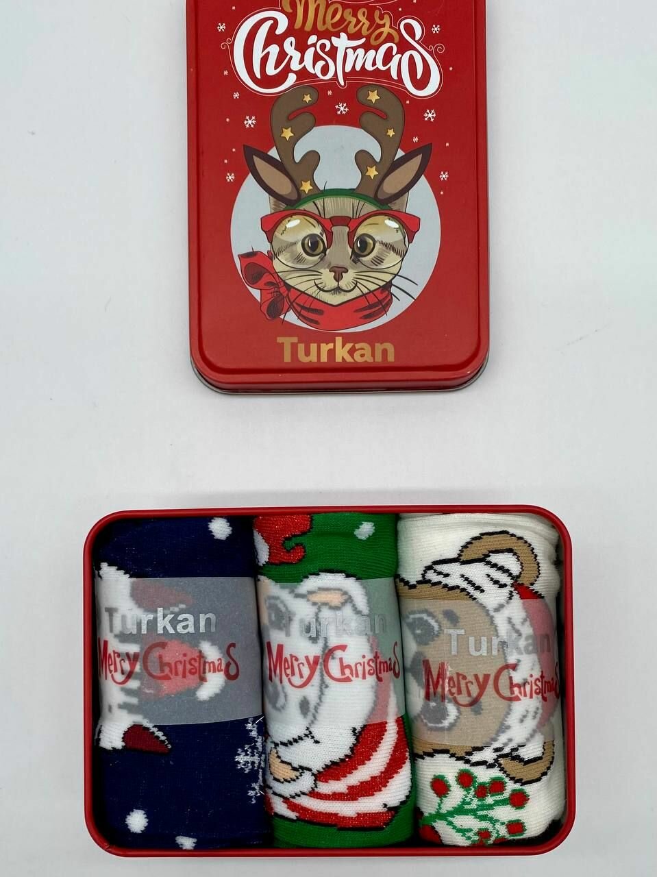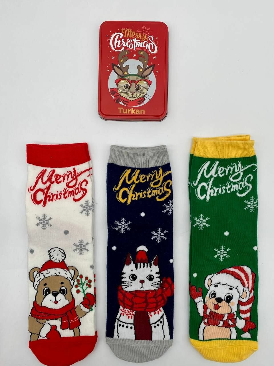 Новогодние носки подарочный набор с принтом 3 пары Котенок