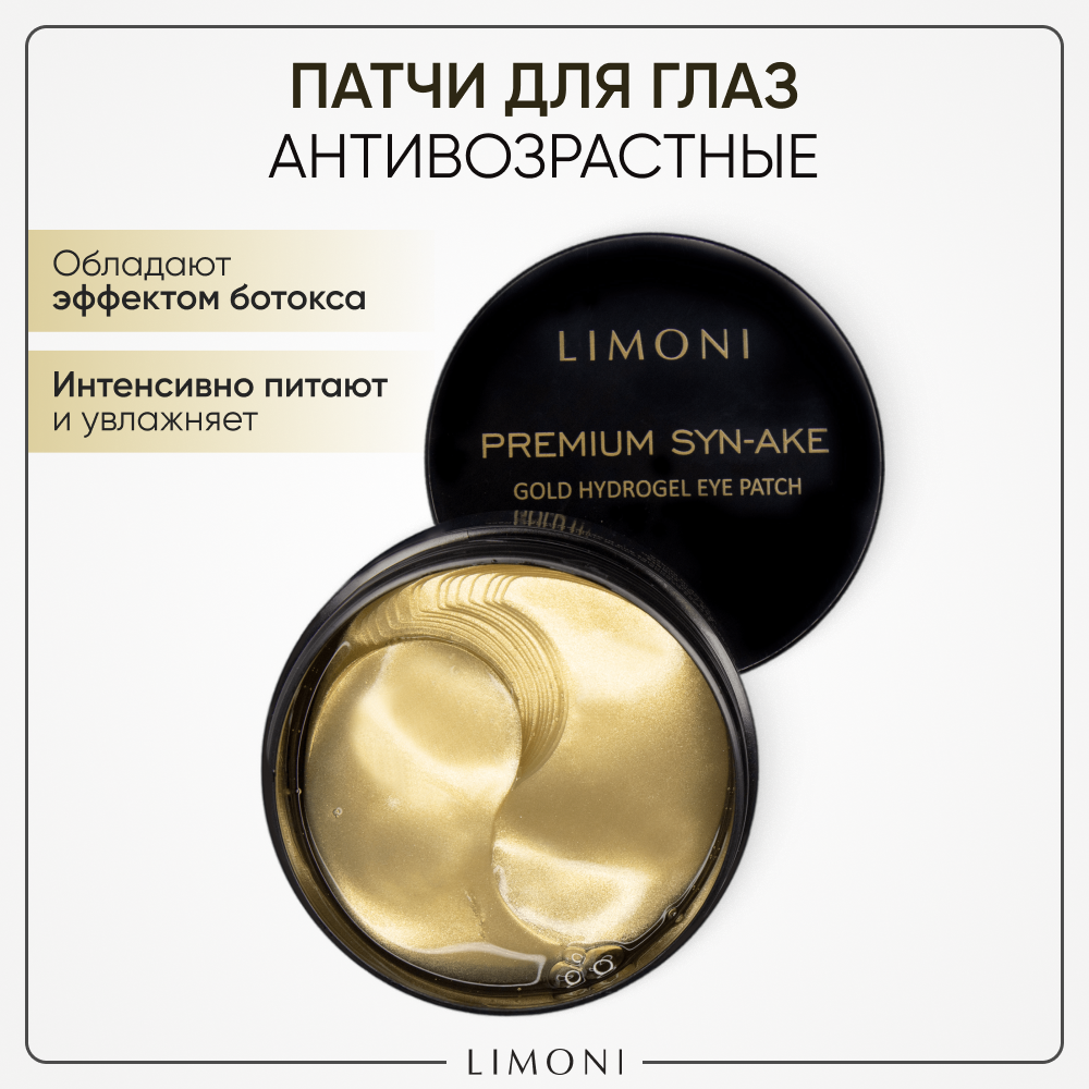 LIMONI Гидрогелевые корейские патчи для глаз от отеков и морщин с пептидами Premium Syn-Ake, 60 шт